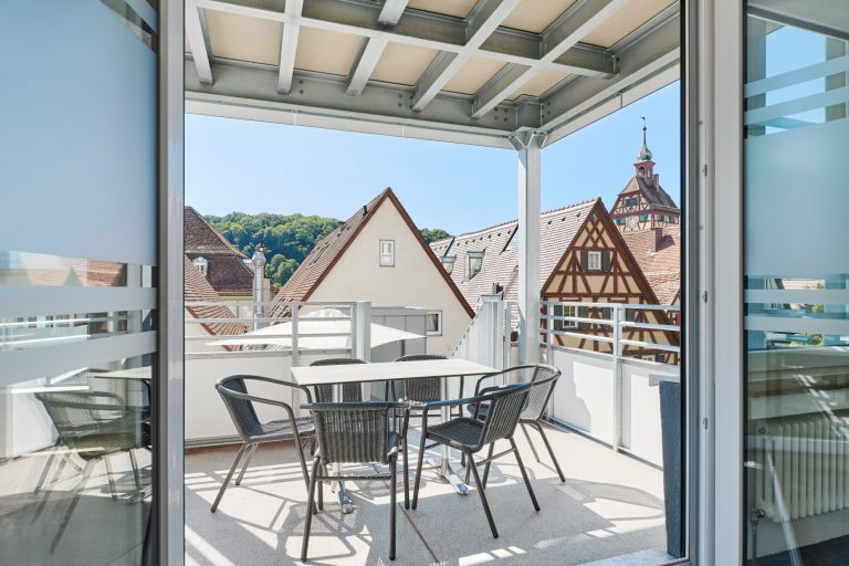 Unsere Schule befindet sich im Herzen von Schwäbisch Hall, direkt in der wundervollen Fachwerk-Altstadt mit seinen vielen Eisdielen und Shops, nur wenige Schritte vom Kocher entfernt. Entlang des Ufers laden zahlreiche Orte zum Entspannen ein. Ebenfalls schön: Unser eigener Balkon, auf dem du dich erholen kannst. Schwäbisch-Hall ist mit dem Regionalexpress aus allen Richtungen schnell zu erreichen.