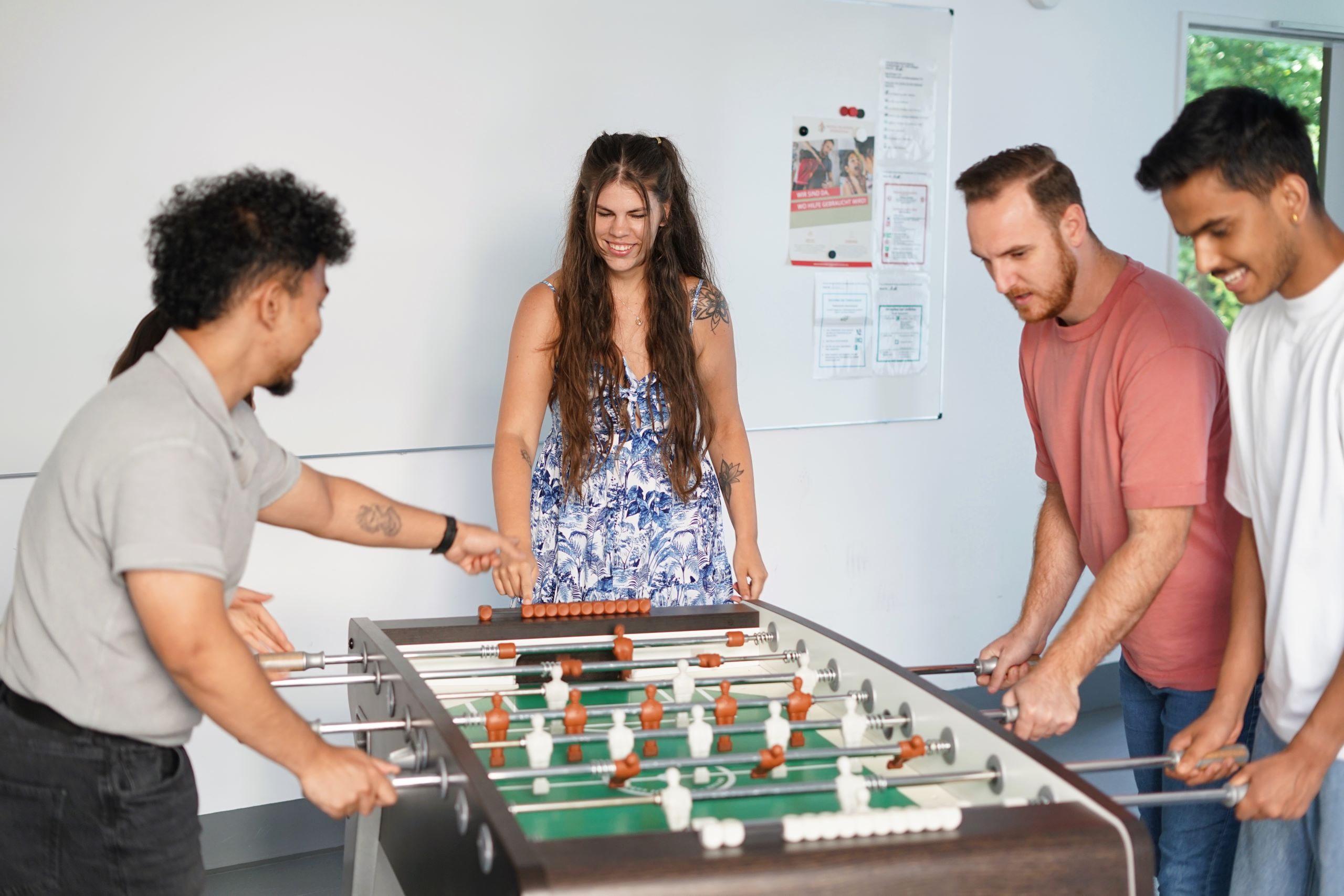 Alle Wege führen ans DI am Stuttgarter Nordbahnhof. Du ereichst uns lässig mit der S- oder Stadtbahn. Mehrere Linien halten fast direkt vor unserem lichtdurchfluteten, ziemlich coolen Gebäude. In wenigen Minuten bist du im herrlichen Rosensteinpark, um den Kopf wieder etwas freizubekommen. Alternativ kannst du in den Alltagstrubel von Stuttgart-Nord eintauchen und in den vielen Bistros günstig lunchen.